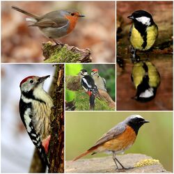 Kohlmeise, Blaumeise, Sumpfmeise, Tannenmeise, Eichelhäher, Elster, Amsel, Singdrossel, Wachholderdrossel, Goldammer, Buchfink, Bergfink, Rotkehlchen, Zaunkönig, Mönchsgrasmücke, Fitis, Mäusebussard, Sperber, Ringeltaube, Hohltaube, Buntspecht, Mittelspecht, Kleiber, Gartenbaumläufer, Grünspecht, Rabenkrähe, Star, Erlenzeisig, Kernbeißer, Gartenrotschwanz, Star,